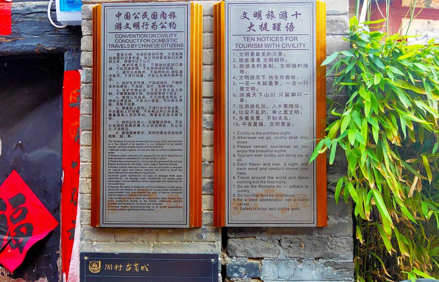 笨鳥文旅集團接手周村古商城規(guī)劃、設(shè)計之后,巧妙的利用周村歷史文化、地域文化、自然空間等特色來打造,結(jié)合周村古商城建筑環(huán)境的一些特質(zhì)選取材質(zhì),使導(dǎo)視系統(tǒng)更好地融入環(huán)境,傳遞文化信息,融入周村文化元素也有助于促進景區(qū)文化特色提升,增加對游客的吸引度。
