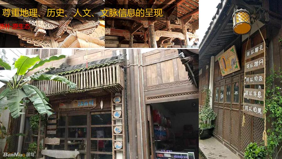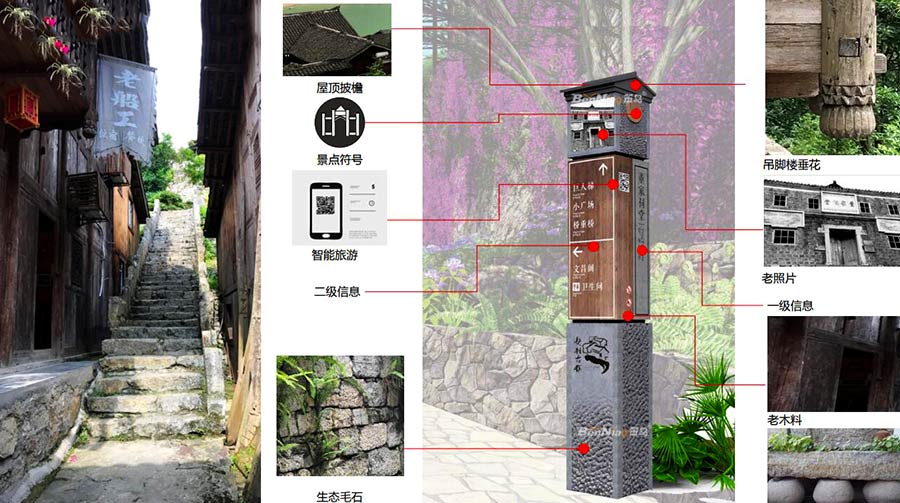 融合:維護(hù)古鎮(zhèn)盛水相應(yīng)的傳統(tǒng)風(fēng)貌,標(biāo)識融入環(huán)境;