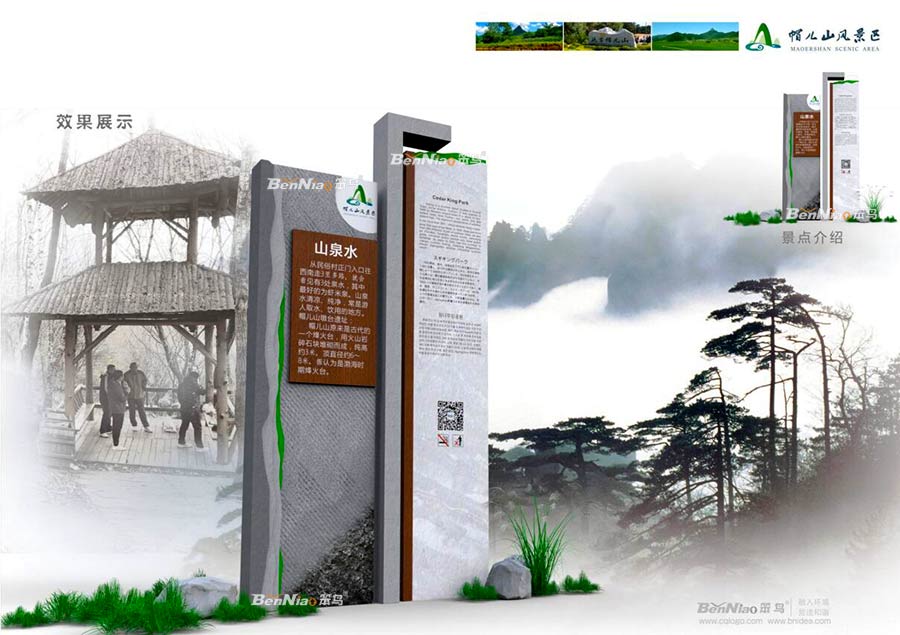風(fēng)景名勝景區(qū)標識標牌的設(shè)計制作要在材料、樣式、顏色、規(guī)格等方面做到統(tǒng)一,不同類型的風(fēng)景名勝標識標牌的設(shè)計制作要定制相應(yīng)的方案,并采用相近的設(shè)計風(fēng)格,這樣才能在不同地區(qū)統(tǒng)一標識標牌。