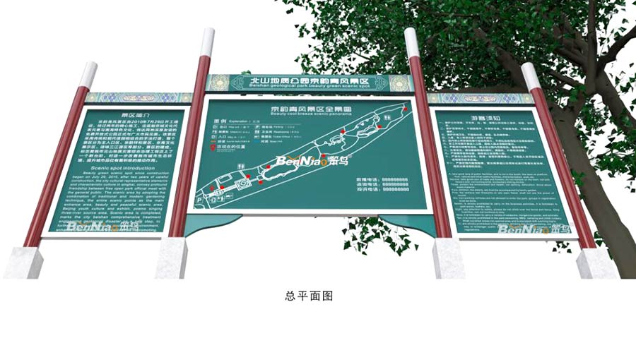 旅游景區(qū)標(biāo)識的規(guī)劃布局結(jié)合京韻青風(fēng)景點(diǎn)分布和環(huán)境需求進(jìn)行,每個標(biāo)識標(biāo)牌都提煉景區(qū)文化特色元素運(yùn)用到標(biāo)識設(shè)計中。把對景區(qū)的文化、建筑風(fēng)格以及整體環(huán)境的揉合,融入京城文化代表元素與青海特色文化,使整個標(biāo)識系統(tǒng)真正做到融入環(huán)境、營造和諧。下面我們來看看笨鳥文旅設(shè)計師設(shè)計的京韻青風(fēng)旅游景區(qū)標(biāo)識標(biāo)牌。