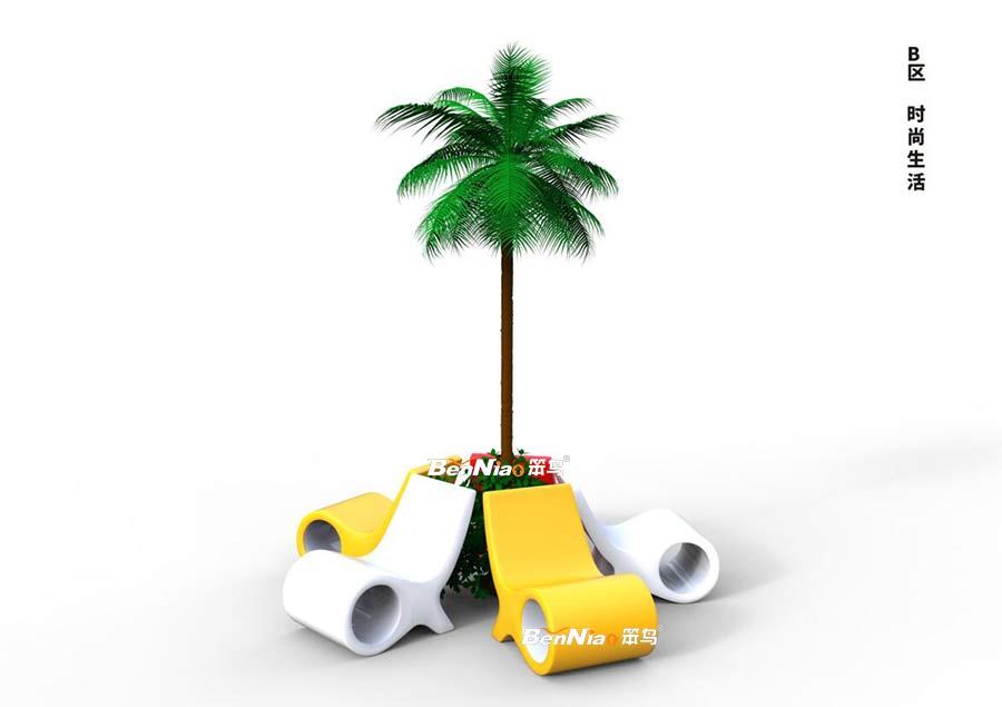 體量較小、色彩單純,對(duì)空間起點(diǎn)綴作用。