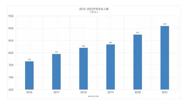 根據(jù)教育部官方統(tǒng)計,2021年的高校應(yīng)屆畢業(yè)生人數(shù)再創(chuàng)新高,達到了909萬人;同時,今年1078萬考生參加全國高考,人數(shù)創(chuàng)自1977年恢復(fù)高考以來歷史新高。