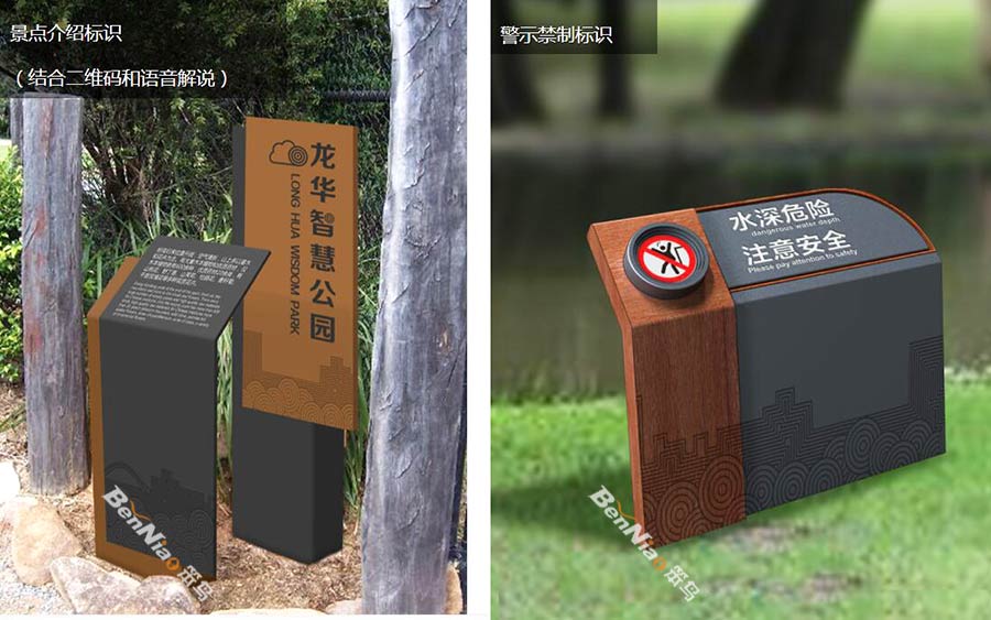 今天笨鳥標(biāo)識小編就跟大家分享一款制作精良且與環(huán)境很好的融合的公園標(biāo)識牌(龍華智慧公園標(biāo)識牌)