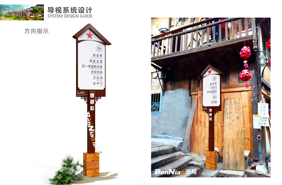 丙安古鎮(zhèn)景點方向指示牌設計效果圖