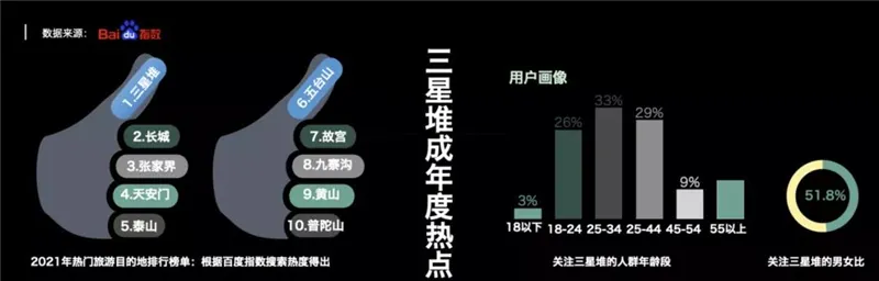 場景,是流量的線下入口,更是傳播的載體。新消費(fèi)品牌依靠數(shù)字化、流量驅(qū)動(dòng)、內(nèi)容運(yùn)營,創(chuàng)造了新的消費(fèi)場景。發(fā)展至今,已成為一個(gè)能與消費(fèi)者共同對(duì)話,共創(chuàng)傳播的空間媒體。如利用三星堆文化出土,博物館成為一個(gè)文化對(duì)話的入口。百度指數(shù)指出,2021年熱門旅游目的地,三星堆排名第一。