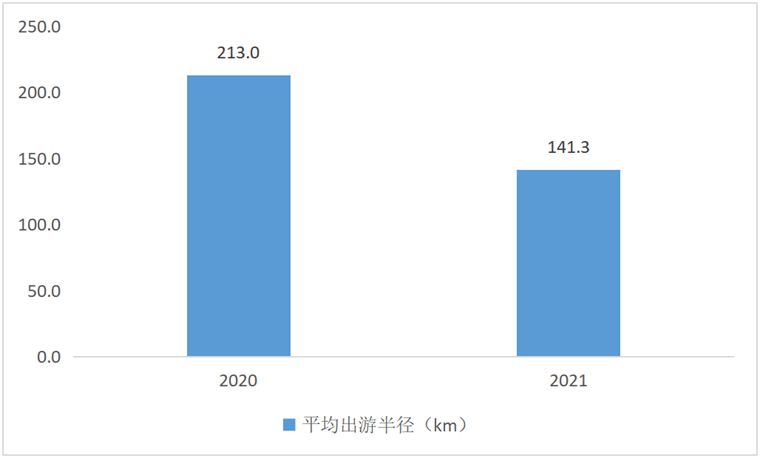 圖3 2020、2021年國(guó)內(nèi)游客平均出游半徑變化(單位:萬(wàn)億元)