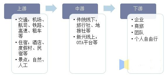 旅游行業(yè)是一個(gè)綜合性產(chǎn)業(yè),其產(chǎn)業(yè)要素包括食、住、行、游、購、娛、體等,產(chǎn)業(yè)鏈包括上游交通、住宿、景點(diǎn)等資源端,中游傳統(tǒng)線上、新興線上渠道端和下游多種旅游消費(fèi)者類型組成的消費(fèi)。