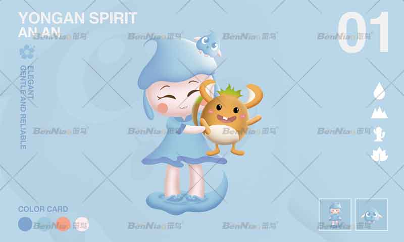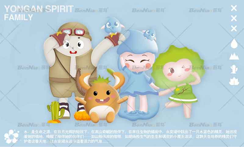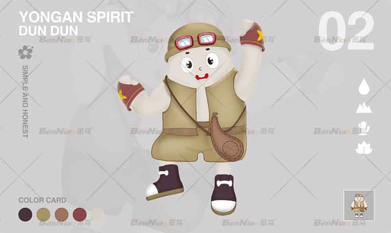 重慶笨鳥(niǎo)文旅設(shè)計(jì)團(tuán)隊(duì)通過(guò)對(duì)永安湖生態(tài)旅游區(qū)歷史文化進(jìn)行深入研究,從中提煉出地域特色文化元素,結(jié)合景區(qū)特點(diǎn),為永安湖、蝴蝶沙漠、達(dá)坂山、濕地胡楊公園設(shè)計(jì)了屬于自己獨(dú)特的IP形象,分別為 “安安、墩墩、滾滾、生生”。