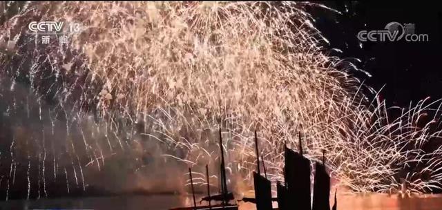 現(xiàn)場燃放的煙火更增添了節(jié)日的喜慶氣氛,流光溢彩的煙花在夜空中綻放,映襯出一片古城月下人團(tuán)圓的美好景象。