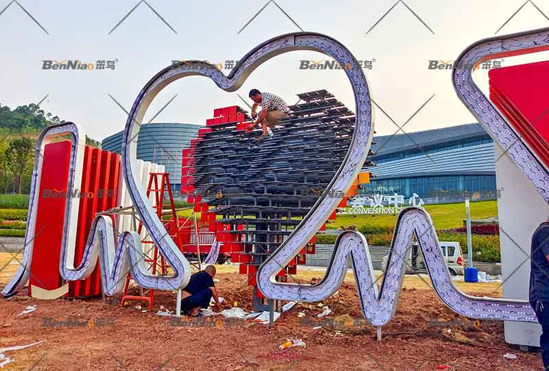 隨著城市建設(shè)的飛速發(fā)展,“景觀藝術(shù)裝置”這個新型名詞可能很多人不知道是什么意思,但我們在廣場、公園等地方見到的互動噴泉、發(fā)光鋼琴鍵、瀑布秋千、會呼吸的燈等景觀亮化都屬于“景觀藝術(shù)裝置”。互動裝置藝術(shù)可以給人們帶來極大地參與感,給鋼筋水泥的城市建設(shè)帶來了勃勃生機,將遙遠的夜景亮化藝術(shù)與大眾拉近了距離,所以也深受人們喜歡,今天笨鳥文旅給大家展示一下為宜賓國際會議中心制作安裝的景觀藝術(shù)裝置。
