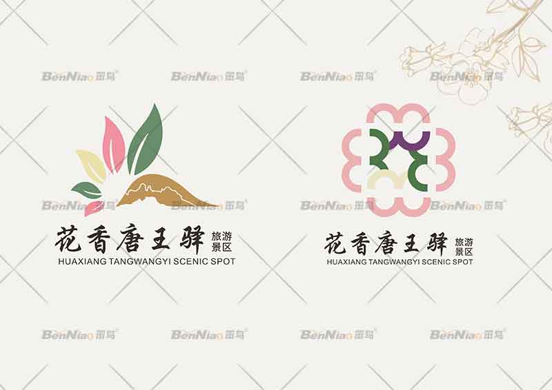 任何一個標志設(shè)計都要圍繞著一個主題展開,景區(qū)logo設(shè)計也是如此,其主題的選擇首先考慮的是當?shù)貥酥拘缘木包c或標志性建筑物,這樣才能讓人一眼就能聯(lián)想到旅游地,這有利于增強品牌的傳播速度,提高客戶粘性。為了使花香唐王驛景區(qū)在眾多同類型的鄉(xiāng)村旅游中脫穎而出,就在文化上區(qū)別于其它地區(qū)的特色。笨鳥文旅為景區(qū)設(shè)計了獨屬他們自己的品牌形象,利用其景區(qū)獨有的特點,將其人文文化、獨特的色彩等元素提取并融入設(shè)計當中。能清晰地看到該品牌形象設(shè)計的特點,同時運用到景區(qū)的導視系統(tǒng)中。