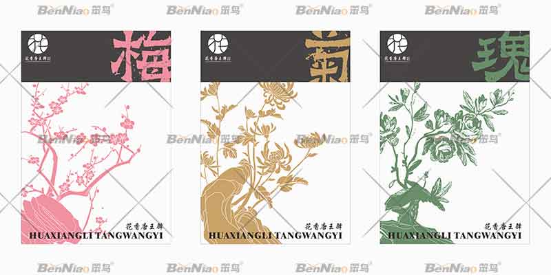 文化成為了旅游的生命,也是景區(qū)的重要吸引力,旅游文化具有極大的發(fā)展?jié)摿??;ㄏ闾仆躞A景區(qū)的文化元素眾多,在提煉元素的時候,笨鳥文旅從景區(qū)中最具代表力的花圃進行設(shè)計,分別運用了花圃中的梅花、菊花、玫瑰等元素繪制出三個輔助圖形,更直觀地介紹當?shù)氐奈幕M瑫r將扁平化的表現(xiàn)形式應用在花香唐王驛景區(qū)旅游品牌形象設(shè)計之中,加上顏色,使得畫面更有沖擊力。