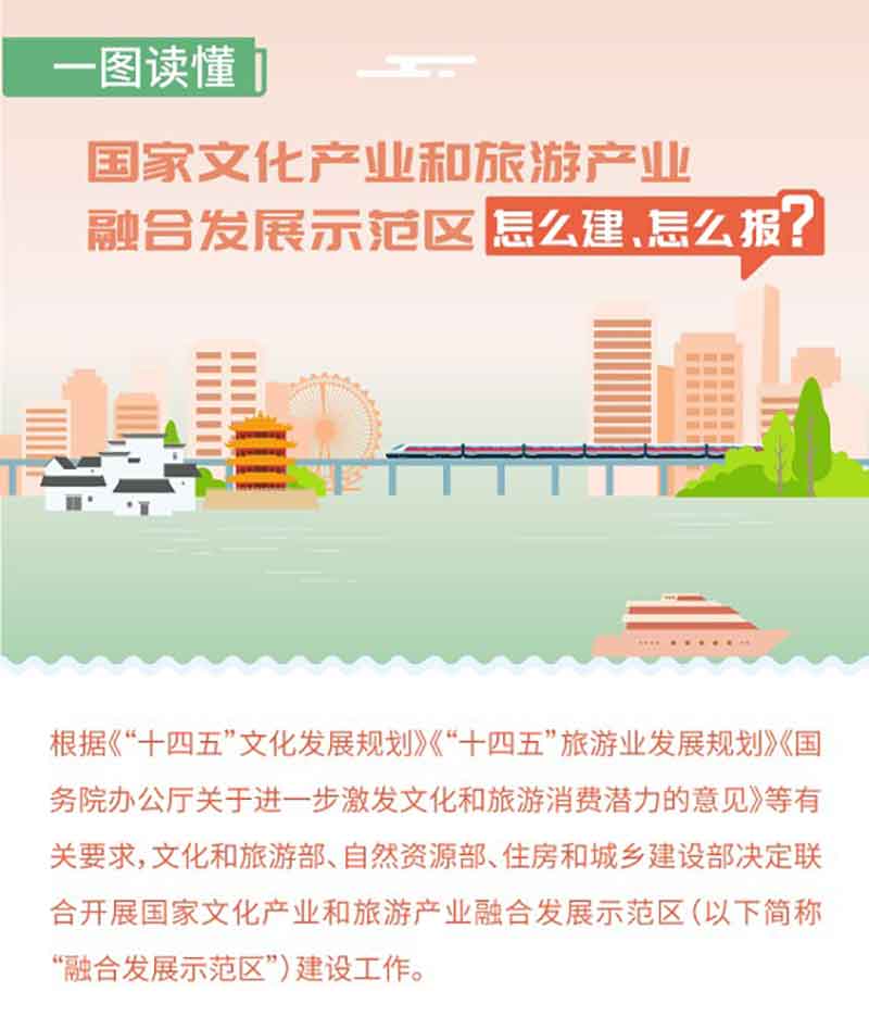 文化和旅游部、自然資源部、住房和城鄉(xiāng)建設(shè)部近日聯(lián)合印發(fā)《關(guān)于開展國家文化產(chǎn)業(yè)和旅游產(chǎn)業(yè)融合發(fā)展示范區(qū)建設(shè)工作的通知》。