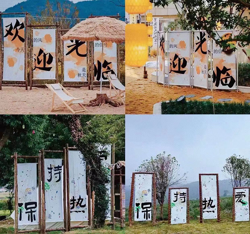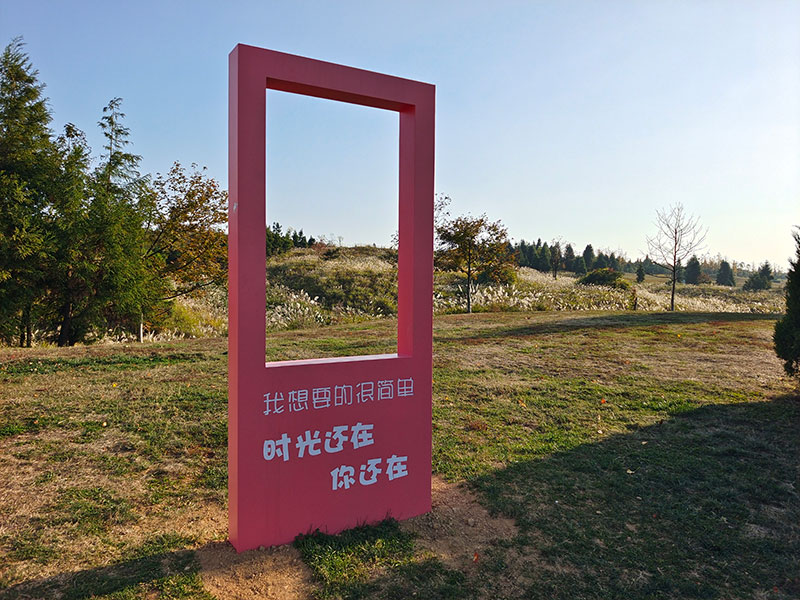 將網(wǎng)絡(luò)標(biāo)語(yǔ)融入到標(biāo)識(shí)、場(chǎng)景氛圍裝置中,可以為場(chǎng)所增添浪漫與溫情的氛圍。文字可以用來(lái)傳達(dá)情感和信息,通過(guò)文字的運(yùn)用,可以創(chuàng)造出一個(gè)溫馨、浪漫的場(chǎng)所。網(wǎng)絡(luò)標(biāo)語(yǔ)運(yùn)用到標(biāo)識(shí)、場(chǎng)景氛圍裝置中往往會(huì)吸引了不少游客、攝影者的青睞到標(biāo)語(yǔ)牌前拍照打卡,將其與美景一起定格在鏡頭中。使其既具有功能屬性,又具有打卡屬性又能宣傳旅游目的地。