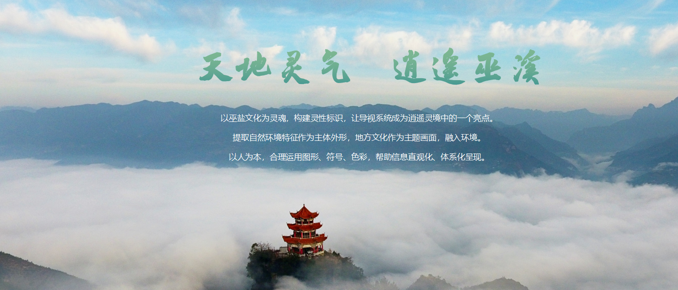 設計分析:巫文化圖樣元素、復古造型、簡約風格,缺點:內(nèi)容信息不符合全域旅游規(guī)范,標識造型整體風格各異,不統(tǒng)一