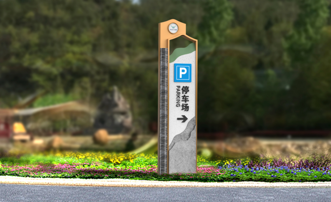 色彩分析:主色為灰、棕,石材基底,輔色以綠色、白色進行搭配;可保留現(xiàn)狀色彩進行標識升級