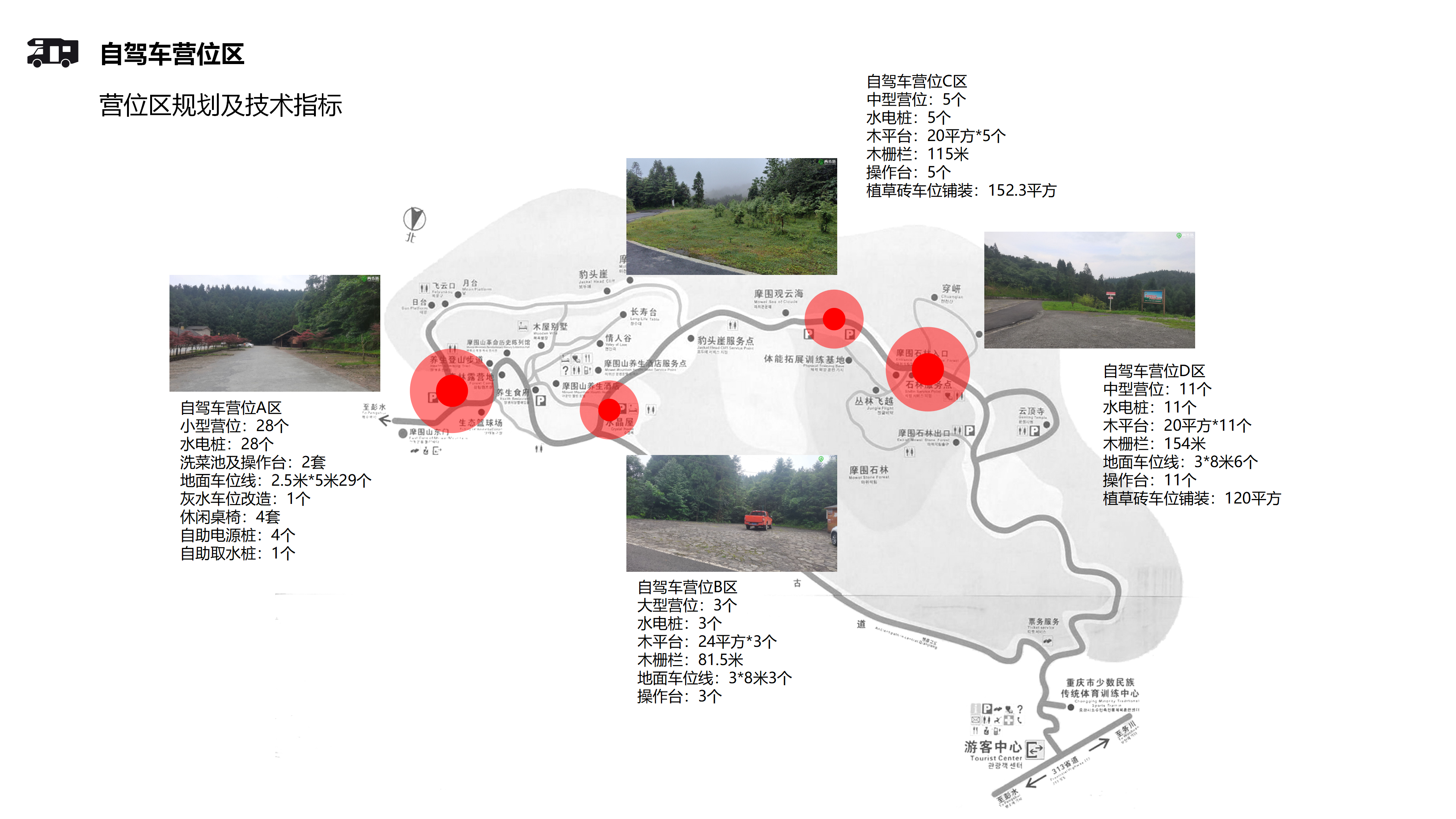 設(shè)置詳細(xì)的地圖和路線指引,幫助游客輕松找到營(yíng)地內(nèi)的各個(gè)區(qū)域,包括自駕營(yíng)地當(dāng)中涉及的區(qū)位如自駕車泊位。露營(yíng)區(qū)、娛樂(lè)設(shè)施等信息。