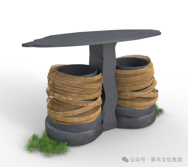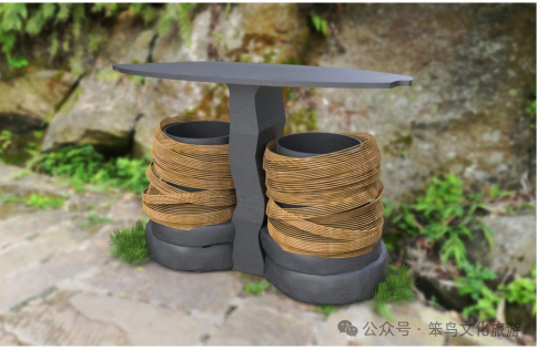 笨鳥團(tuán)隊(duì)在設(shè)計(jì)丙安古鎮(zhèn)古鹽道垃圾桶時,深入融合古鹽道的歷史文化元素,且整體造型模擬古鹽道上的背鹽簍。以竹編紋理質(zhì)感的環(huán)保塑料和仿石紋材質(zhì)打造桶身,既滿足垃圾收納功能,又能成為古鹽道上獨(dú)特的文化景觀小品,向游客和居民傳遞古鹽道的歷史記憶與文化價值,增強(qiáng)人們的環(huán)保意識和對本土文化的認(rèn)同感。
