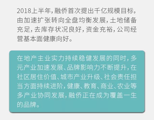 當?shù)禺a(chǎn)發(fā)展進入新常態(tài)的當下,房企持續(xù)發(fā)展命題無疑落在多元化產(chǎn)業(yè)布局之上。通過更豐富的領域與空間,延伸人們對美好生活的想象空間和未來期許。2018年啟始,融僑提出“城市美好生活綜合服務商”的定位并持續(xù)為之奮斗,全面升級多元產(chǎn)業(yè)布局。