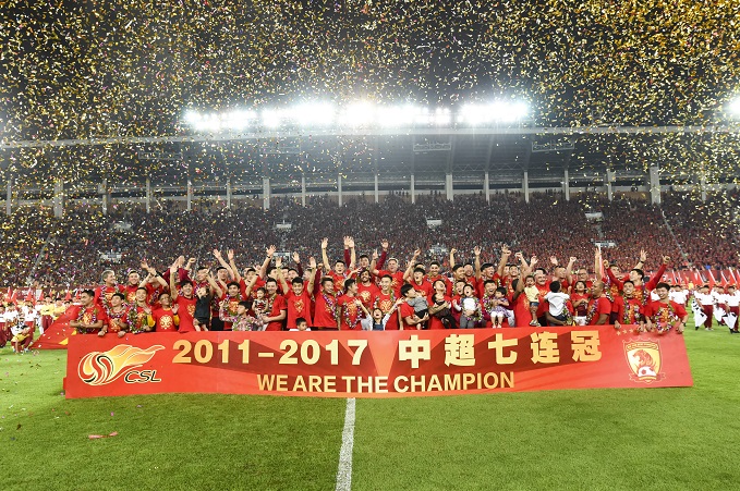 10月22日,廣州恒大隊(duì)在天河體育場(chǎng)以5比1狂勝貴州恒豐隊(duì),提前2輪勇奪中超冠軍,成為中國(guó)職業(yè)足球歷史上第一支7連冠球隊(duì),追平了世界職業(yè)足球聯(lián)賽連續(xù)奪冠的世界紀(jì)錄。賽后,廣州市人民政府發(fā)來賀信,贊揚(yáng)恒大隊(duì)“書寫廣州足球新篇章”,“為廣州添了彩、爭(zhēng)了光”,并希望恒大隊(duì)繼往開來,“為加快建設(shè)廣州國(guó)際體育名城努力奮斗”。