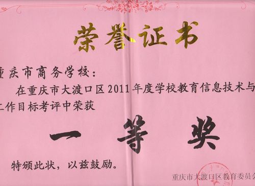 學(xué)校曾先后榮獲“國家級(jí)綠色學(xué)校”“重慶市職業(yè)教育先進(jìn)單位”“重慶市文明單位”“重慶市德育工作示范學(xué)校”“重慶市文明禮儀示范學(xué)?!?“全國中等職業(yè)學(xué)校文明風(fēng)采大賽優(yōu)秀組織獎(jiǎng)”等榮譽(yù)稱號(hào);學(xué)校是“計(jì)算機(jī)應(yīng)用與軟件技術(shù)國家級(jí)實(shí)訓(xùn)基地”“中澳(重慶)職教合作項(xiàng)目伙伴學(xué)校”“中國職教學(xué)會(huì)商科專業(yè)委員會(huì)常務(wù)理事單位”“全國教育科學(xué)‘十五’規(guī)劃國家重點(diǎn)課題實(shí)驗(yàn)學(xué)校”“重慶市非物質(zhì)文化遺產(chǎn)傳承教育基地”
