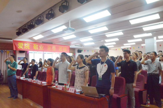 “我志愿加入中國共產(chǎn)黨……”鮮紅的黨旗,鏗鏘恢宏的入黨誓詞,全體黨員神情肅穆、整齊站立、舉起右拳……下午15時(shí)許,重溫入黨誓言后,黨員大會(huì)正式開始。院黨總支副書記王昌利主持會(huì)議。