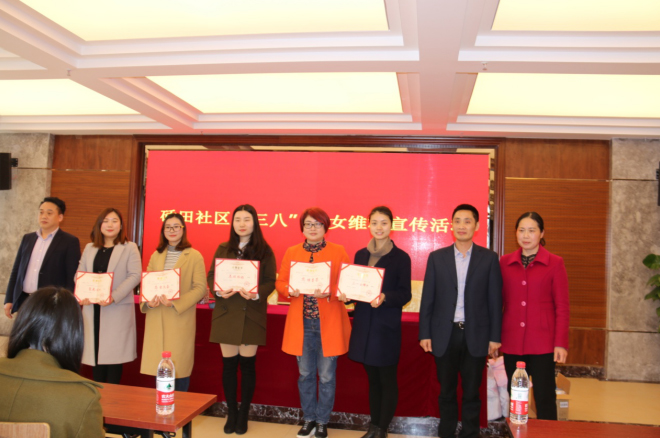 在熱烈的掌聲中,陳明會書記宣布了公司員工投票評選的“三八紅旗手”“美麗媽媽”“慈祥婆婆”“賢惠媳婦”“恩愛夫妻”獲獎名單并頒發(fā)了證書和獎品。會上,陳明會書記和黃勇主任還分別為大家?guī)砹恕瓣P(guān)愛女性健康”、“婦女維權(quán)”等知識講座;與此同時,還舉行了婦女職工詩詞接龍比賽,充分展示了我司女職工的精神風(fēng)貌。最后,王家街道硚田社區(qū)的工作人員給所有參會女職工發(fā)放了節(jié)日慰問禮品。
