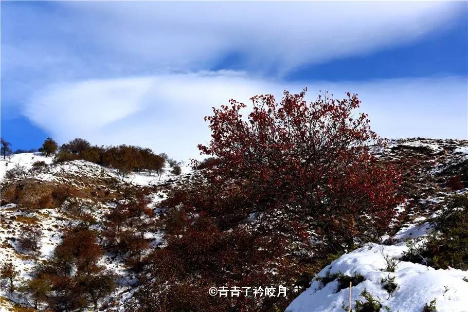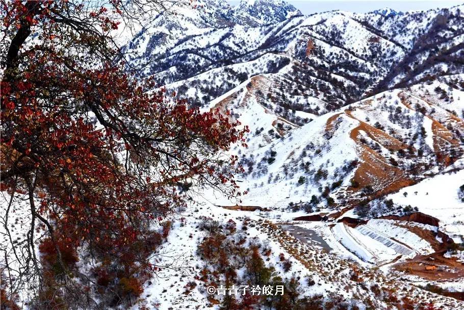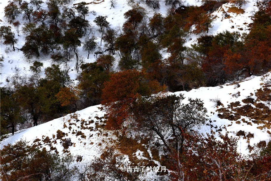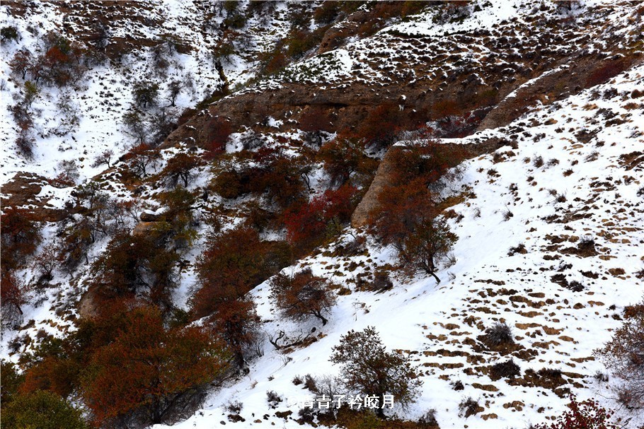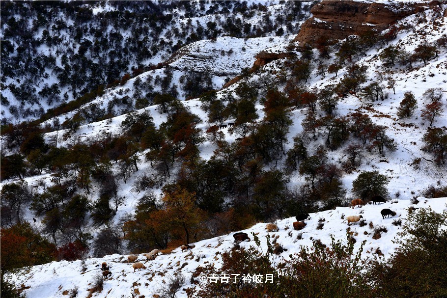 半山腰上,牛羊在休閑的吃草,還時(shí)不時(shí)傳來它們的叫聲,一場(chǎng)初雪,更是讓這一切更加?jì)趁模缭娙绠嫛?/span>