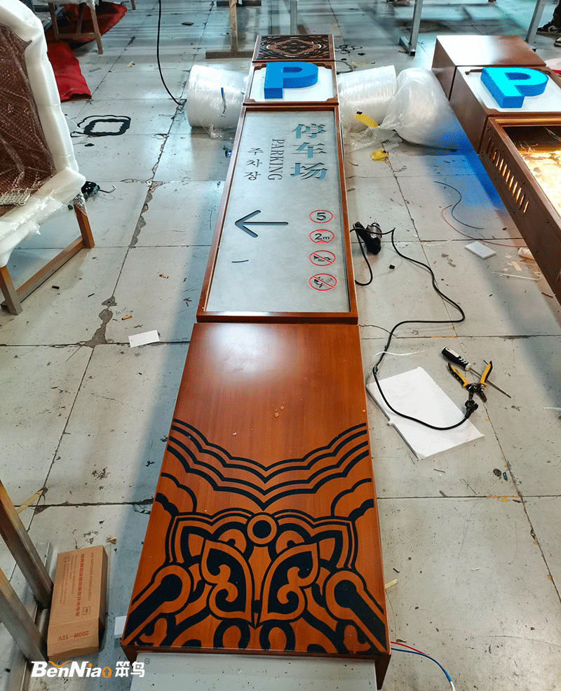 制作完成點易園標識牌現(xiàn)場半成品區(qū)(圖)