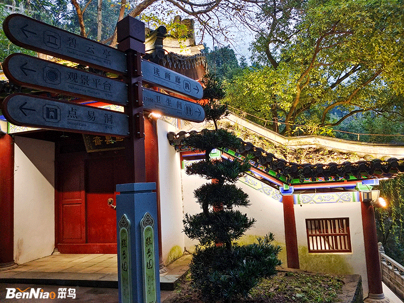 點易園風(fēng)景區(qū)方向指示牌夜間(圖)