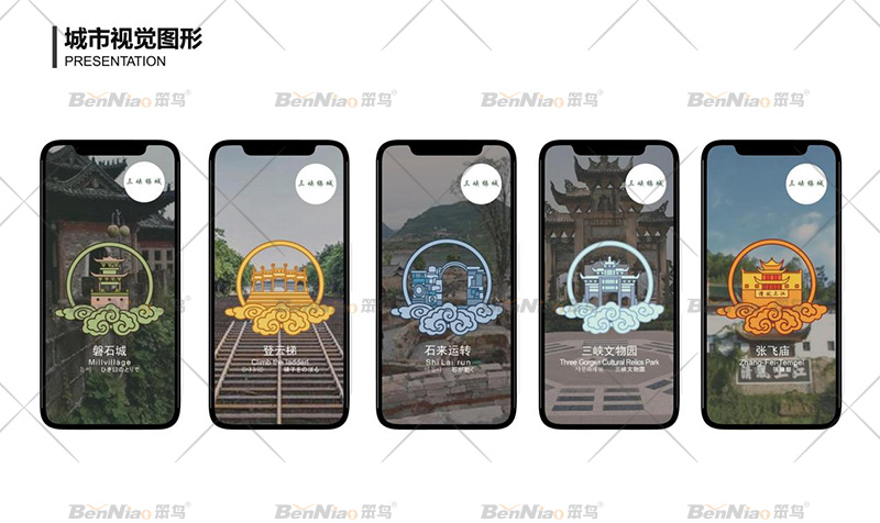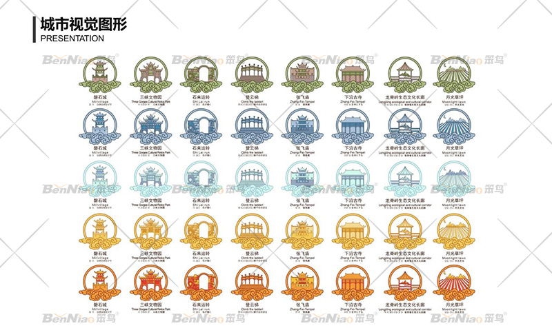 城市視覺圖形是城市視覺形象的核心,是城市內(nèi)涵意義的主要視覺載體,它可以直觀地反映出城市的視覺識別特征,將抽象的城市內(nèi)涵與精神以視覺的方式呈現(xiàn)出,濃縮成為城市的標(biāo)志或象征物為公眾所認(rèn)知。笨鳥視覺設(shè)計師通過對云陽縣獨特的歷史文化、自然文化和地標(biāo)性建筑的提煉,使其圖形化,擴大設(shè)計語言的豐富性,展現(xiàn)云陽地理信息文化,從而借此契機盡早的統(tǒng)一城市形象,打造云陽自身特色品牌。并將帶有濃郁特色標(biāo)志性圖案應(yīng)用到云陽縣城市環(huán)境中去,服務(wù)于云陽縣的城市發(fā)展,豐富其文化。
