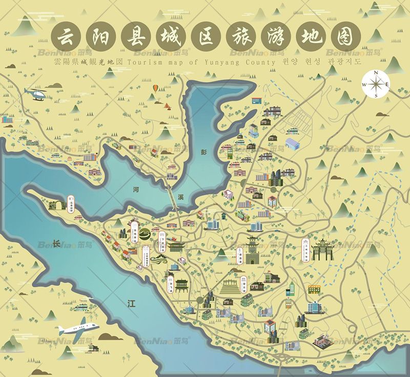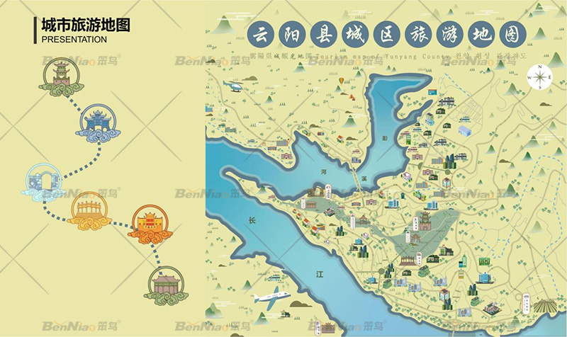將云陽縣具有特色的標(biāo)志性圖標(biāo)運用到手繪地圖中,可通過更具人文內(nèi)涵與親和力的空間表現(xiàn)手法,在立體視角中呈現(xiàn)出特定地點獨有的文化魅力和個性色彩。云陽縣手繪地圖不僅僅是標(biāo)注的坐標(biāo),更多的是賦予了云陽縣人性化的靈魂。