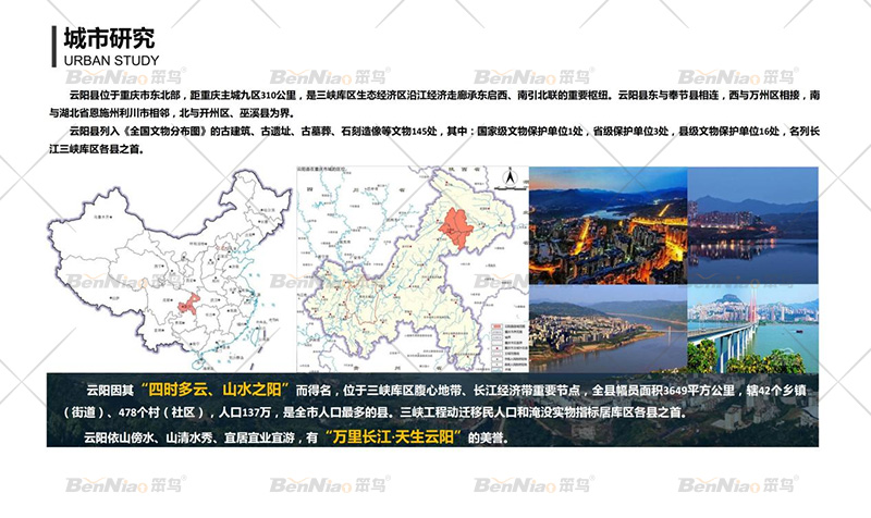 笨鳥文旅將從城市品牌形象的五個視角去設(shè)計專屬云陽縣的城市品牌符號:一、資源視角的城市品牌形象;二、產(chǎn)品品牌視角的城市品牌形象;三、文化視角的城市品牌形象;四、產(chǎn)業(yè)視角的城市品牌形象;五、營銷視角的城市品牌形象。綜合以上的五個視角為云陽縣打造成具有獨特性的旅游名片,從而優(yōu)化旅游發(fā)展格局,強化旅游宣傳力度。