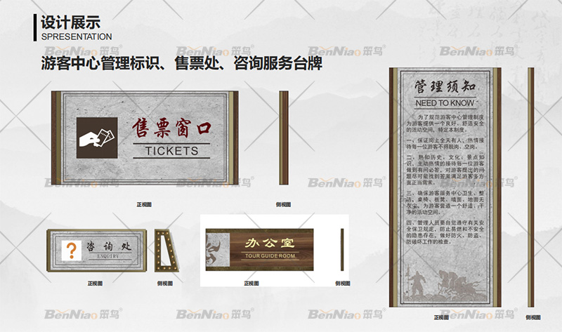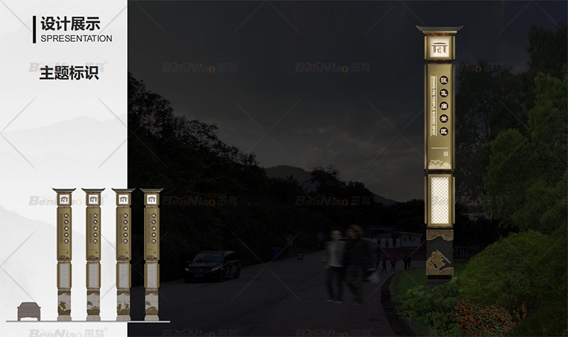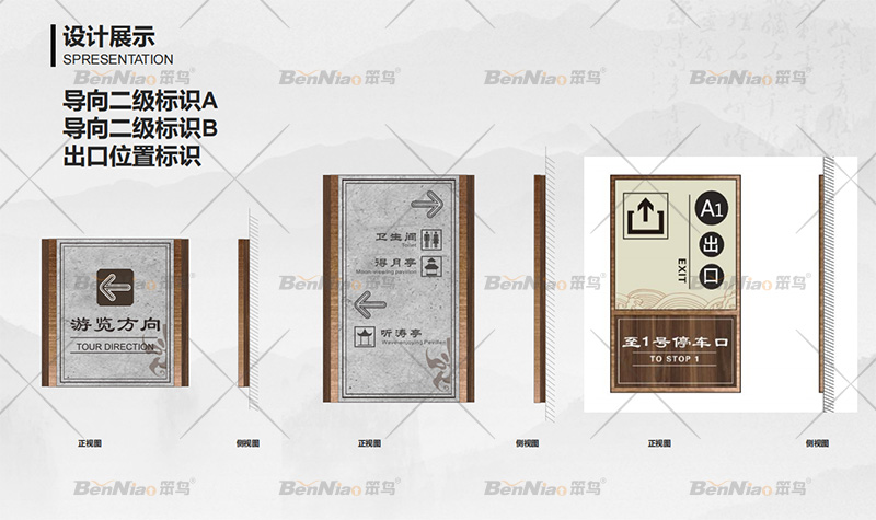 通過前期對云陽張飛廟景區(qū)的實地勘察,在設計導視系統(tǒng)時我們首先考慮到了它的文化屬性,其次是云陽景區(qū)導視系統(tǒng)進行分類,按照功能性來分設計了主題標識、區(qū)域導覽標識、景點介紹一級二級標識、景區(qū)導向標識一級二級等標識且確定了景區(qū)各類標識的數(shù)量,這對我們整個景區(qū)的導視系統(tǒng)有個整體的把控。最后在文件深化時我們的設計師又充分考慮到整個景區(qū)導視系統(tǒng)的造型、色彩、尺度、預埋方式以及內容規(guī)范性等因素。做到云陽張飛廟旅游景區(qū)的導視系統(tǒng)有其獨特性,這種獨特性是完全屬于它所在的旅游景區(qū)并融入景區(qū)環(huán)境中。