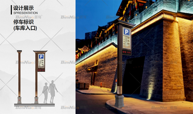 笨鳥從整體上梳理構建標識體系,合理規(guī)劃點位布局,完善標識指示信息,統(tǒng)一標識設計風格。設計了停車指示標識、導向一級二級標識、溫馨提示標識等。