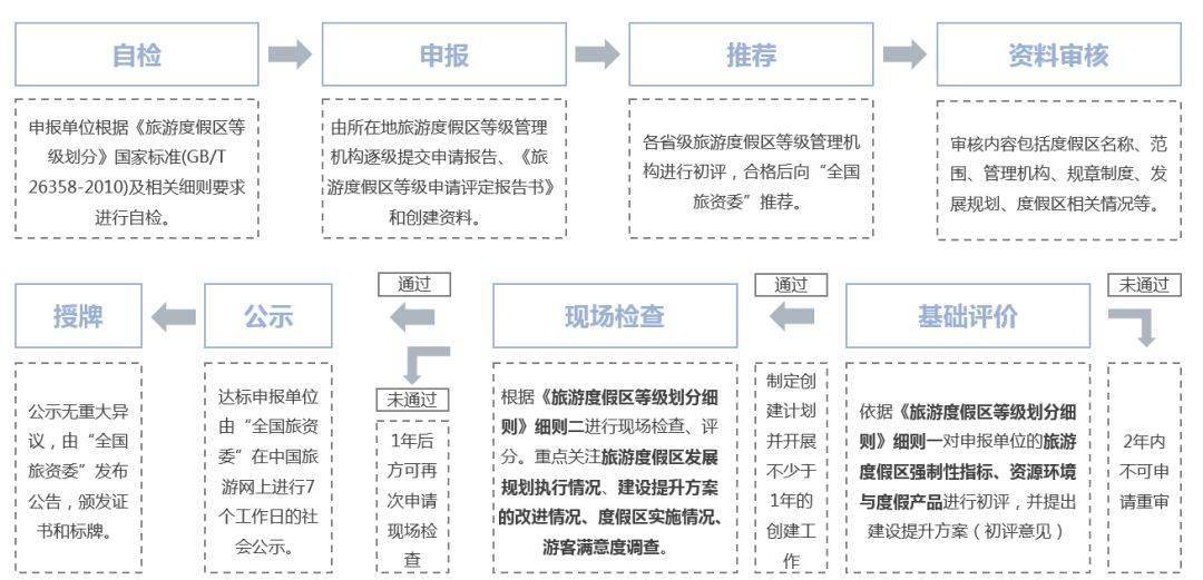 國(guó)家級(jí)旅游度假區(qū)引領(lǐng)休閑度假旅游的發(fā)展,其評(píng)定標(biāo)準(zhǔn)為行業(yè)制定了發(fā)展規(guī)范,促進(jìn)高品質(zhì)產(chǎn)品豐富國(guó)內(nèi)度假市場(chǎng)?!堵糜味燃賲^(qū)等級(jí)劃分》國(guó)家標(biāo)準(zhǔn)(GB/T 26358-2010) 《國(guó)家旅游局關(guān)于開(kāi)展國(guó)家級(jí)旅游度假區(qū)評(píng)定工作的通知》《旅游度假區(qū)等級(jí)管理辦法》《旅游度假區(qū)等級(jí)劃分細(xì)則》(2015年5月) 。國(guó)務(wù)院旅游主管部門(mén)委托“全國(guó)旅游資源規(guī)劃開(kāi)發(fā)質(zhì)量評(píng)定委員會(huì)”(以下簡(jiǎn)稱“全國(guó)旅資委”),具體負(fù)責(zé)國(guó)家級(jí)旅游度假區(qū)等級(jí)管理工作的組織和評(píng)審,授權(quán)并督導(dǎo)省級(jí)旅游度假區(qū)等級(jí)管理機(jī)構(gòu)開(kāi)展評(píng)審工作。國(guó)家級(jí)旅游度假區(qū)基礎(chǔ)評(píng)價(jià)和現(xiàn)場(chǎng)檢查環(huán)節(jié)的評(píng)審由“全國(guó)旅資委”負(fù)責(zé)組織相關(guān)行業(yè)專家組成評(píng)審委員會(huì)進(jìn)行評(píng)審程序。