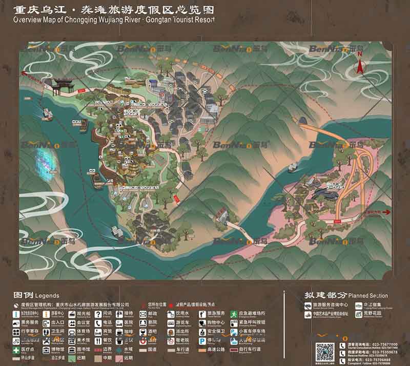 以重慶烏江·龔灘旅游度假區(qū)手繪地圖為例