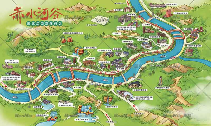 以下是笨鳥文旅為更多景區(qū)繪制的手繪地圖展示: