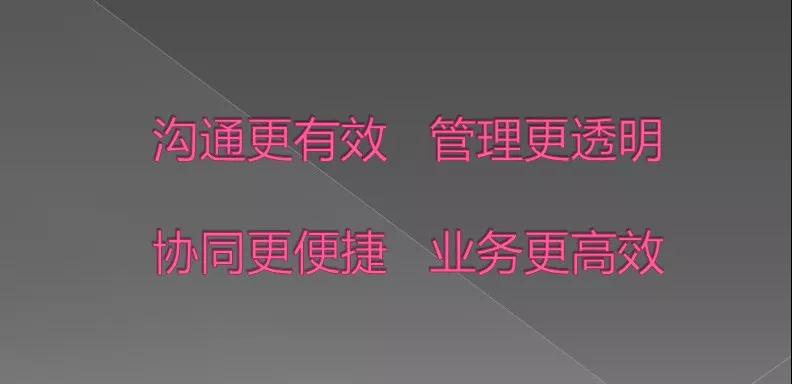 那么我們要把這種工作路徑通過簡化、在線、鏈接、賦能幸福這樣的工作方法達到我們最終想要的目標(biāo):溝通更有效、管理更透明、 協(xié)同更便捷、業(yè)務(wù)更高效,這是我們希望達到的目標(biāo)。